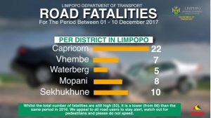Limpopo's road fatalities as at 10 December 2017